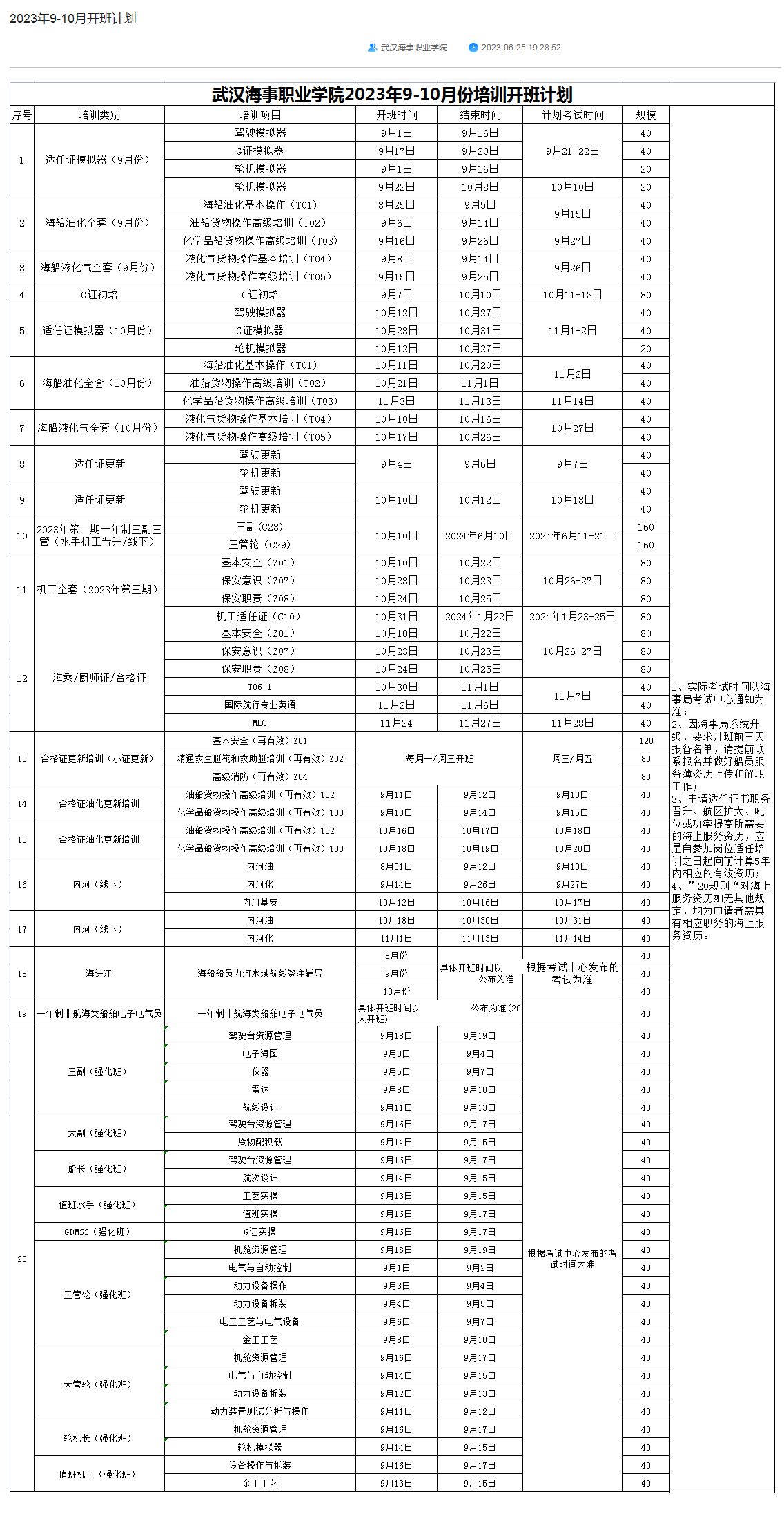 9月中旬 武汉 丁类船长晋升丙二船长班(航区扩大+吨位提升)