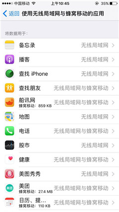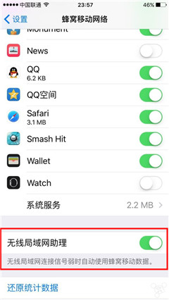 所有的“无线局域网”或者“关闭”都手动设置为“无线局域网与蜂窝移动”