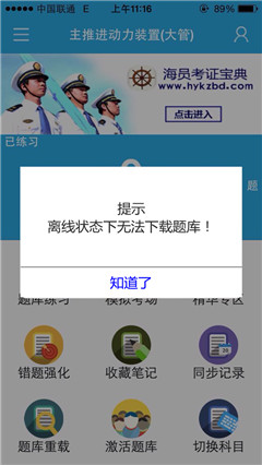 1、首先下载安装好,“海员考证宝典”软件到桌面,打开软件后发现软件无法联网,如图
