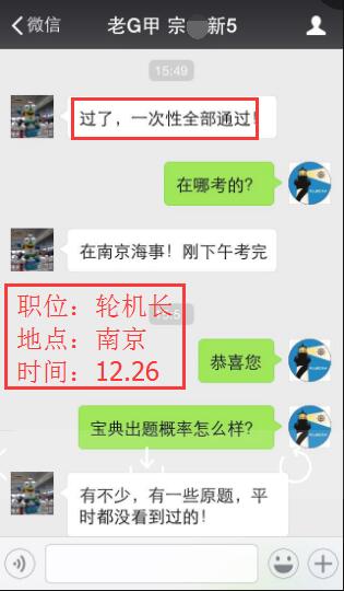 宗先生等多人在南京通过轮机长的11规则适任考试