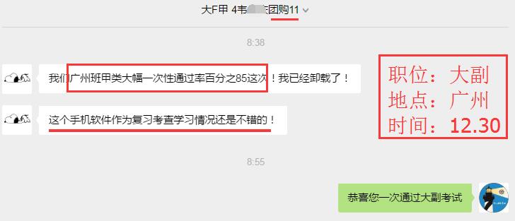 韦先生等班团购在广东通过大副的11规则适任考试;