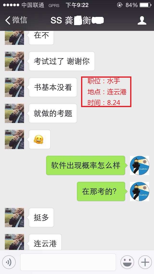 王先生等人在河北+李先生等人在河南新乡+陈先生等人在福建泉州+符先生等多人在海南+龚先生等多人在连云港通过了机工、水手、客滚轮等小证11规则适任考试。
