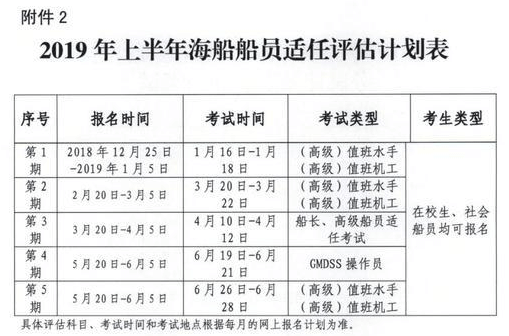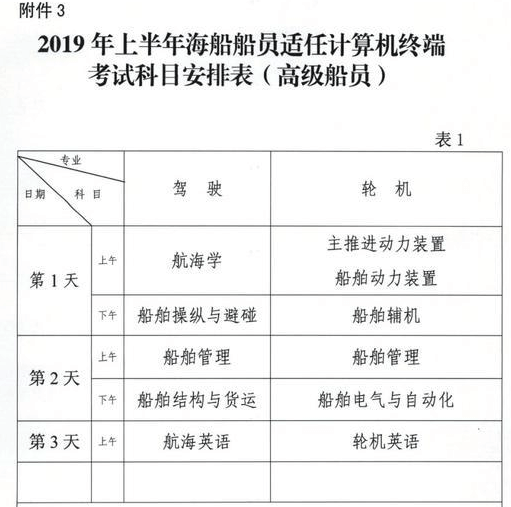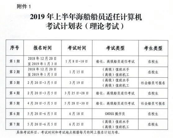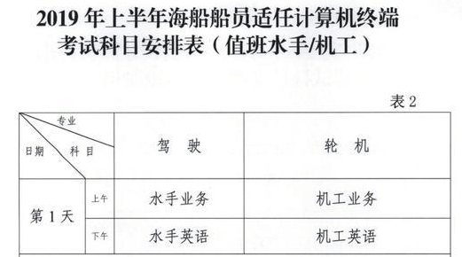 3、2019年上半年海船船员私人计算机终端考试科目安排表