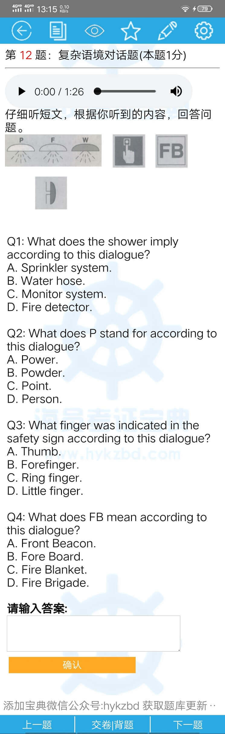 新版《电子电气员》英语听力与会话复杂语境对话题篇丨手机版app正式上线,题库和教材同步,采用最新规则最新大纲题库编辑,题库含有解析和翻译,带有语音和录音功能,符合船员朋友日常学习需要。让学员通过《海员考证宝典》app练习,真正做到:看的会,听得懂,说得出。