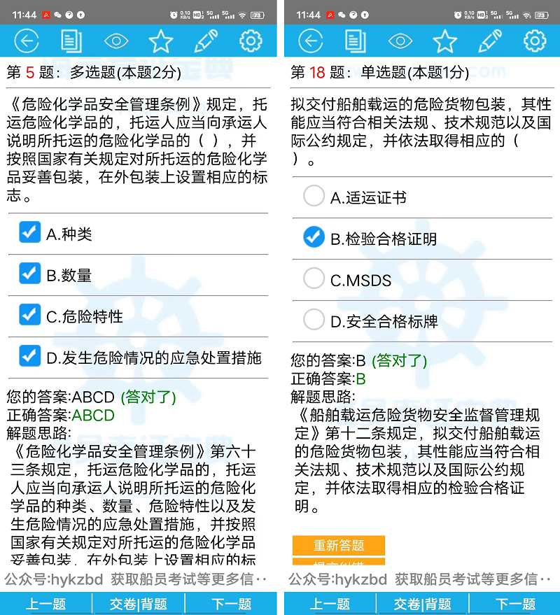 自海事“两员”被正式纳入《国家职业资格目录》后,《海员考证宝典》指定专门班组,第一时间收集整理“两员”官方学习资料,历次考试真题,聘请“两员”专家为题库编撰做顾问,推出量少题精的“两员”考试原题,结合《海员考证宝典》平台的功能,学员通过:刷题、错题强化、考前模拟等高效学习,2年来帮助数千人通过海事“两员”考试的学员取得证书。2023年我们聘请海事“两员”权威专家对试题进行更新和加入解析,深入浅出,引用规则,让学习更加通俗易懂,原题覆盖率高达80-90%,特别是:单选题、多选题和是非题高达90%以上。
